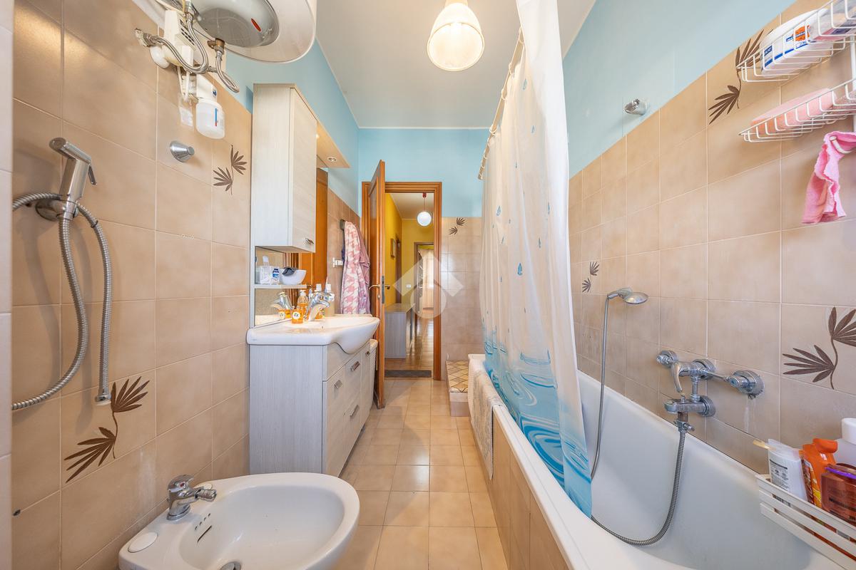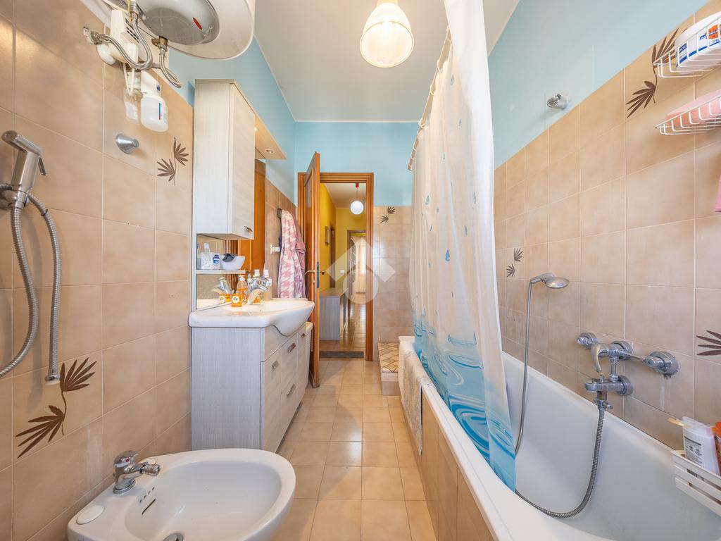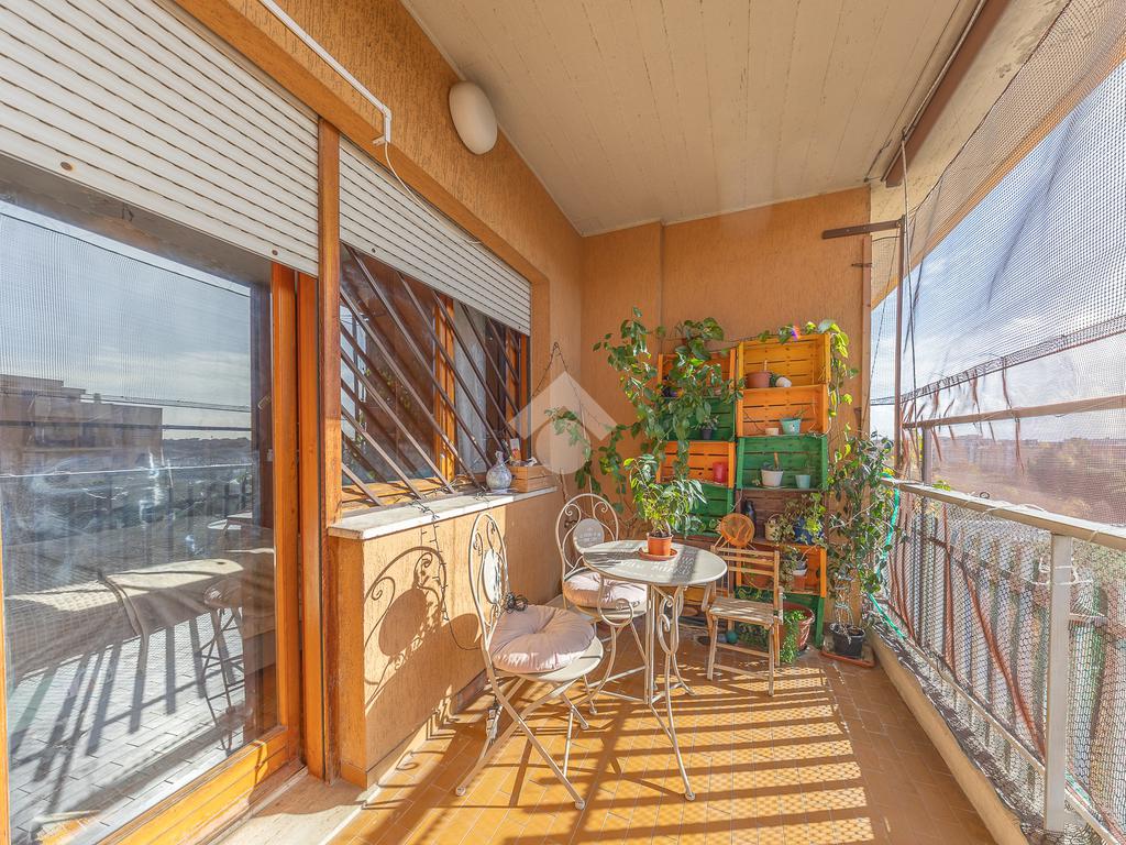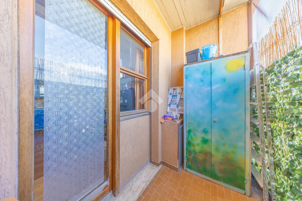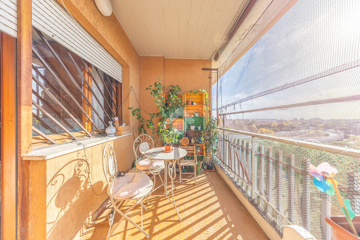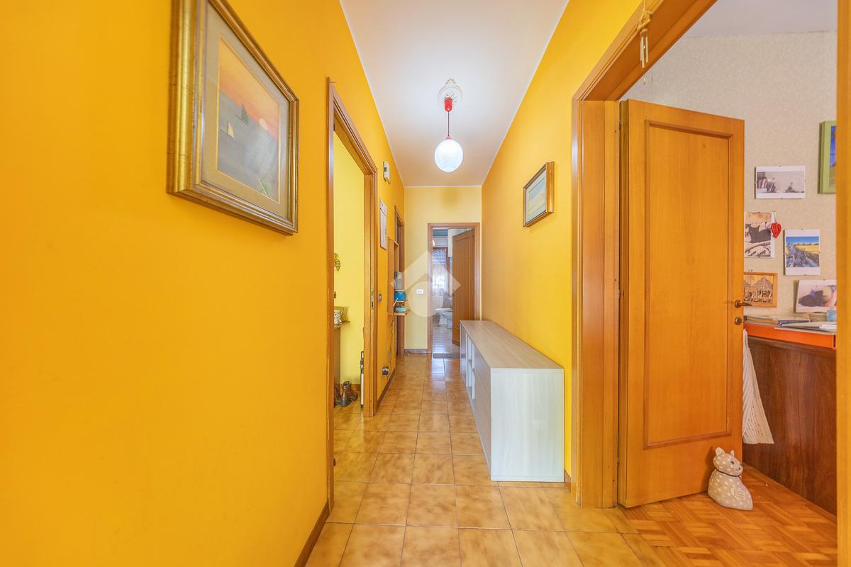 L’ingresso con disimpegno introduce alla cucina abitabile con balcone e al soggiorno, dotato di accesso diretto al terrazzino.