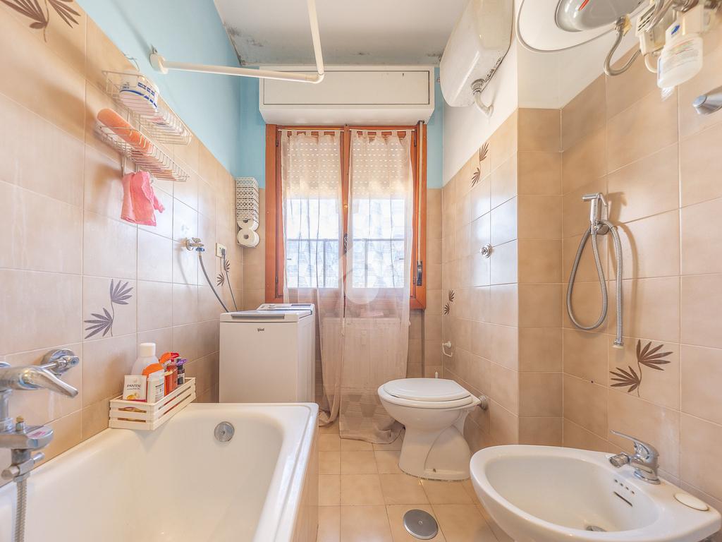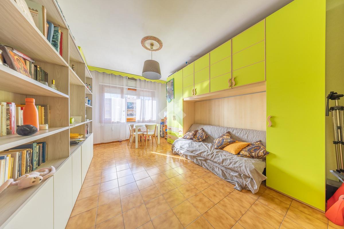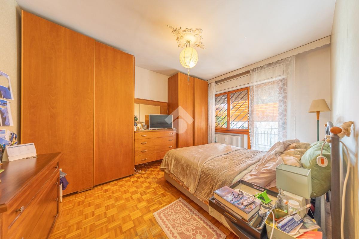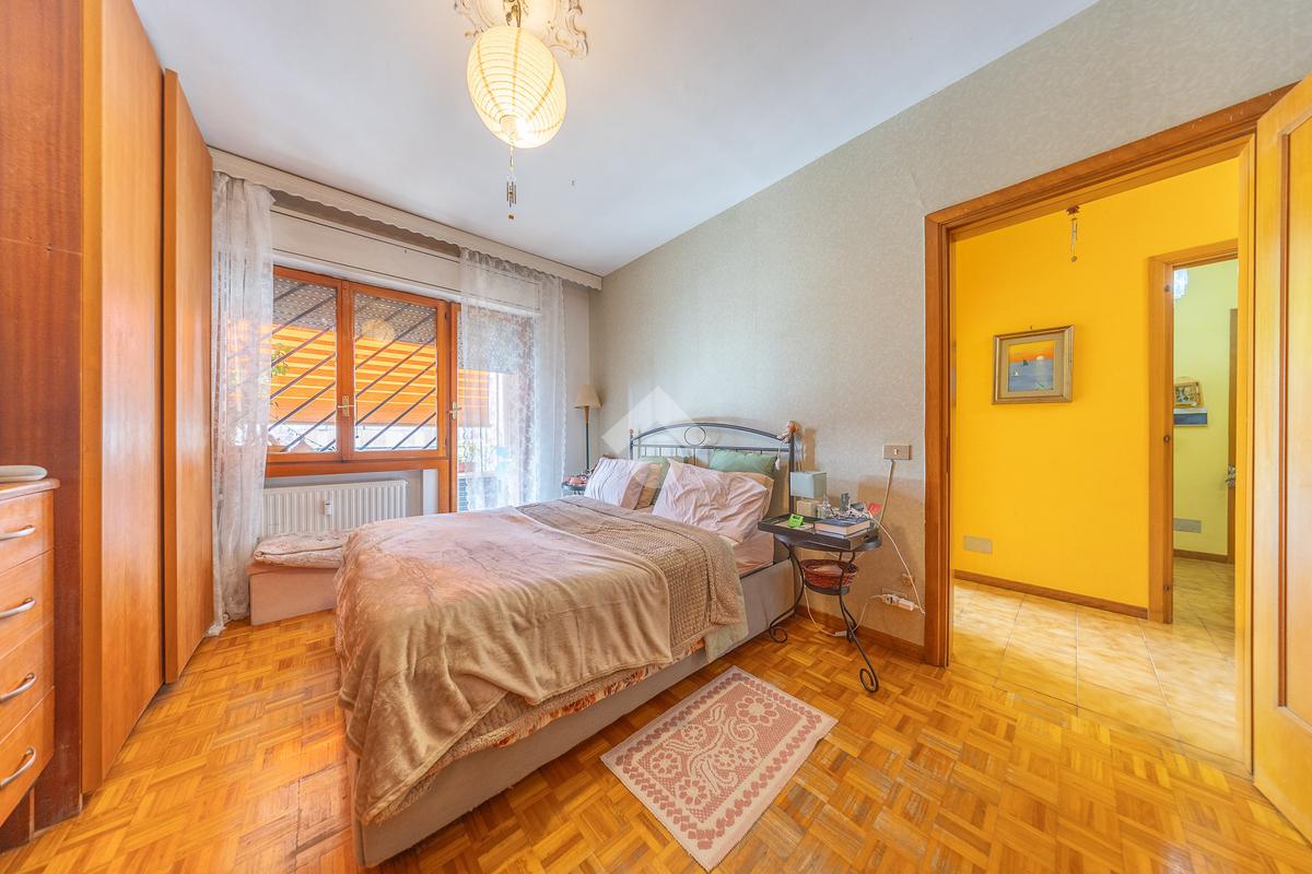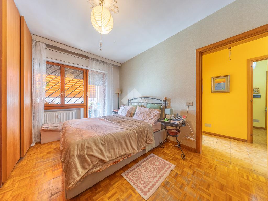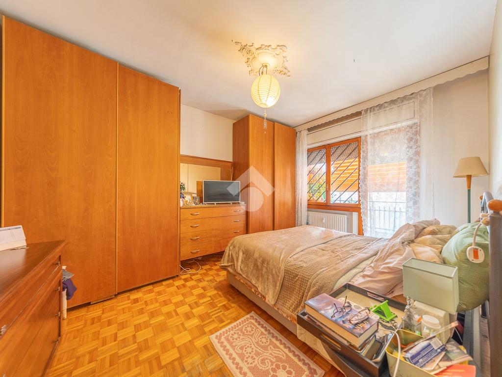 La camera matrimoniale affaccia sullo stesso spazio esterno, garantendo ambienti ariosi e ben collegati. Il bagno è finestrato e ben organizzato.