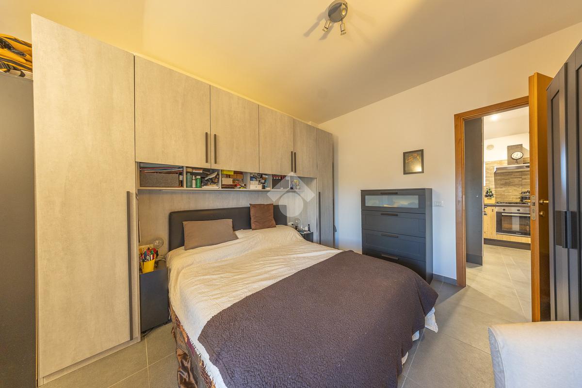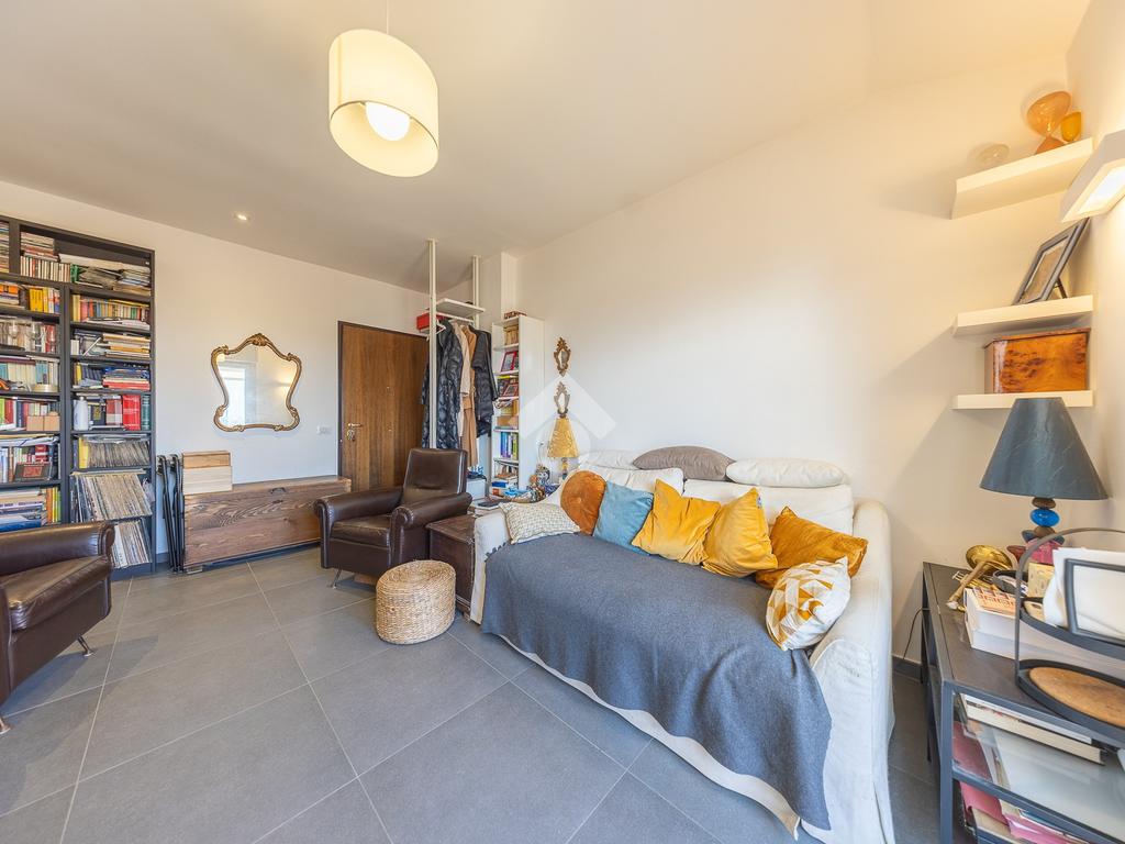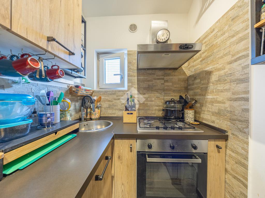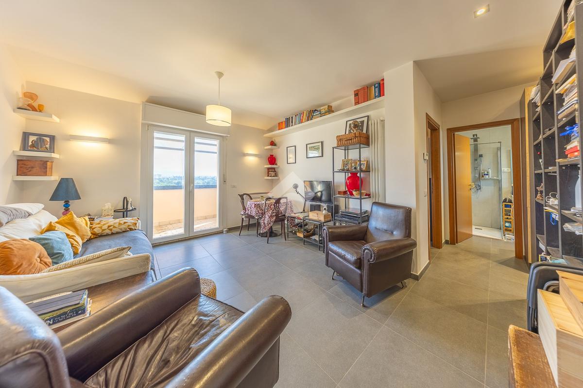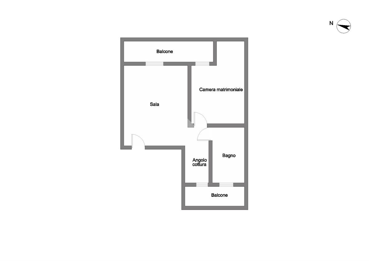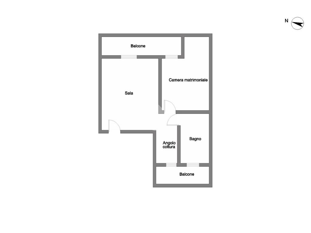 mentre la zona notte comprende una camera matrimoniale e un bagno con uscita su un secondo balcone, ideale per aerazione e comfort.