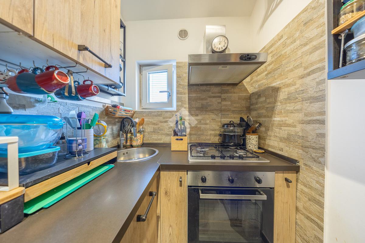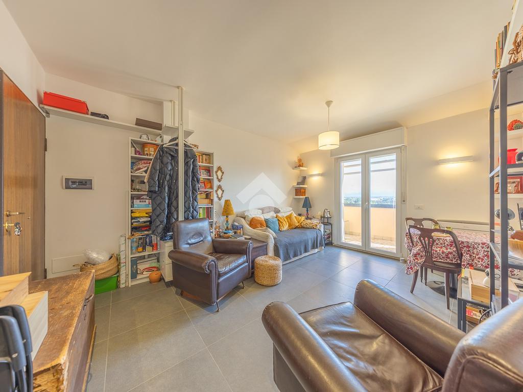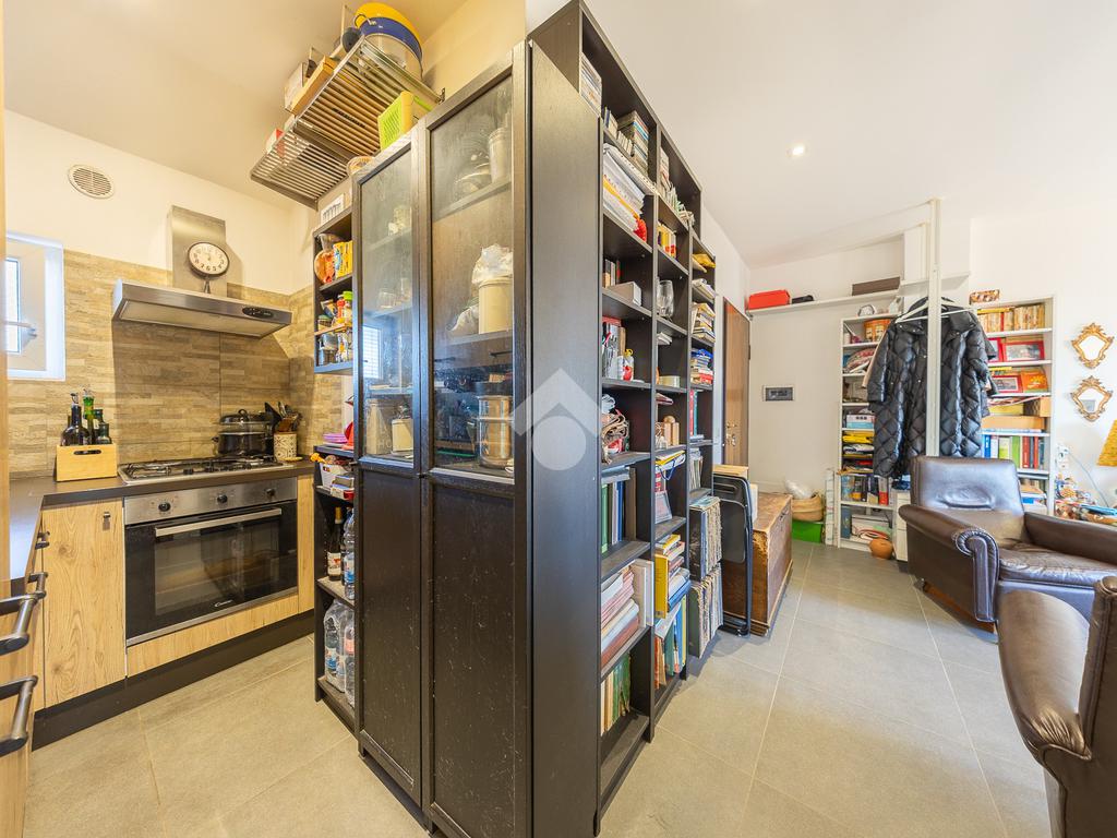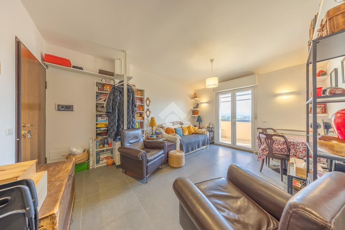 L’ingresso conduce al soggiorno con balcone e cucinotto separato,