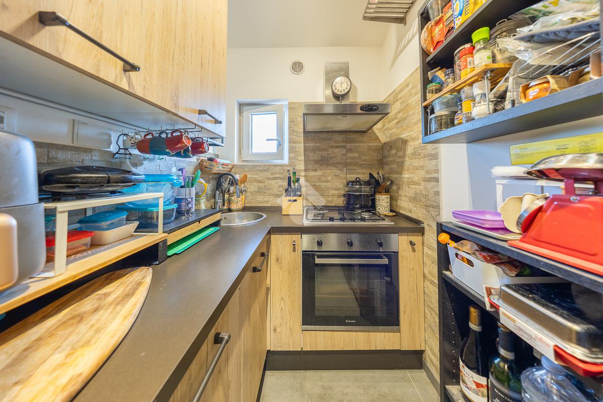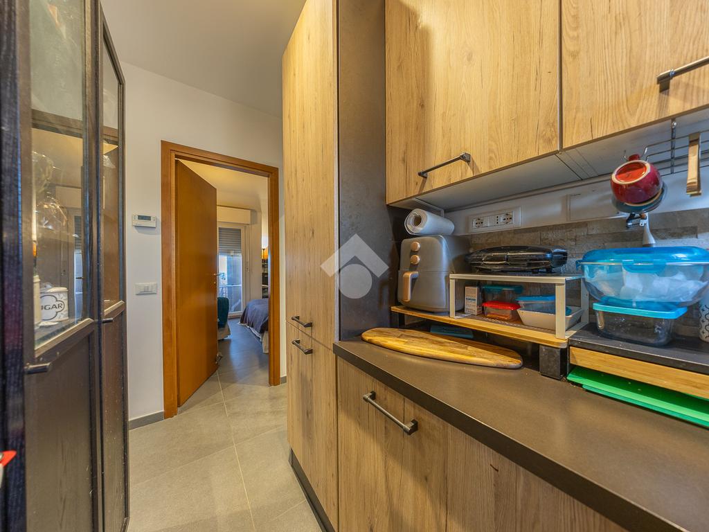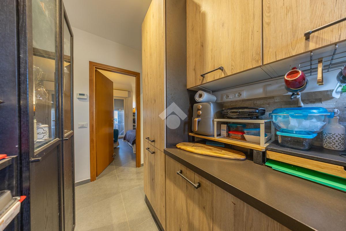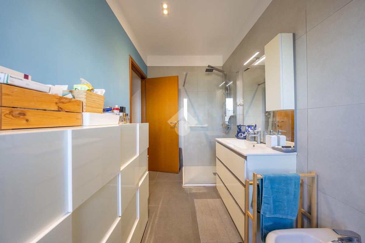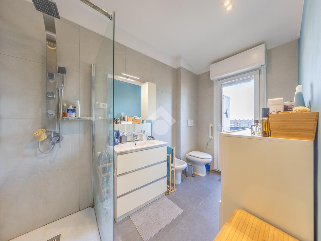 Completano la proprietà infissi nuovi doppio vetro dotati di apertura vasistas, climatizzatori a pompa di calore caldo/freddo Daikin controllabili da remoto, tende elettriche in pvc nel balcone della zona giorno, posto auto coperto e cantina di pertinenza.