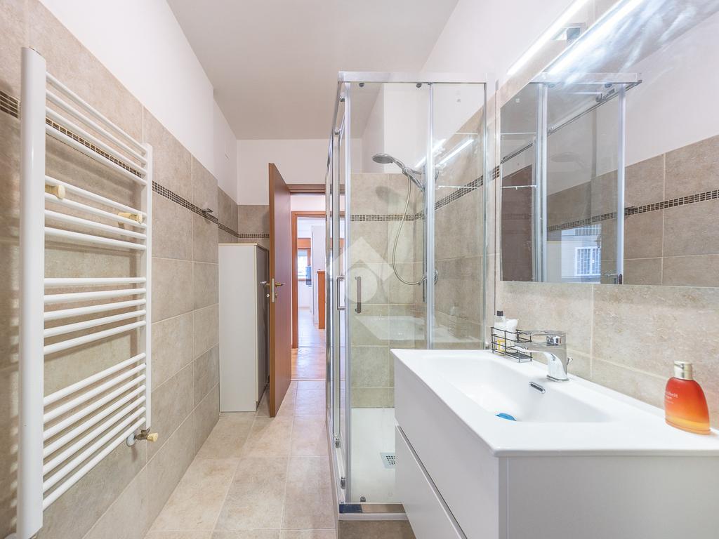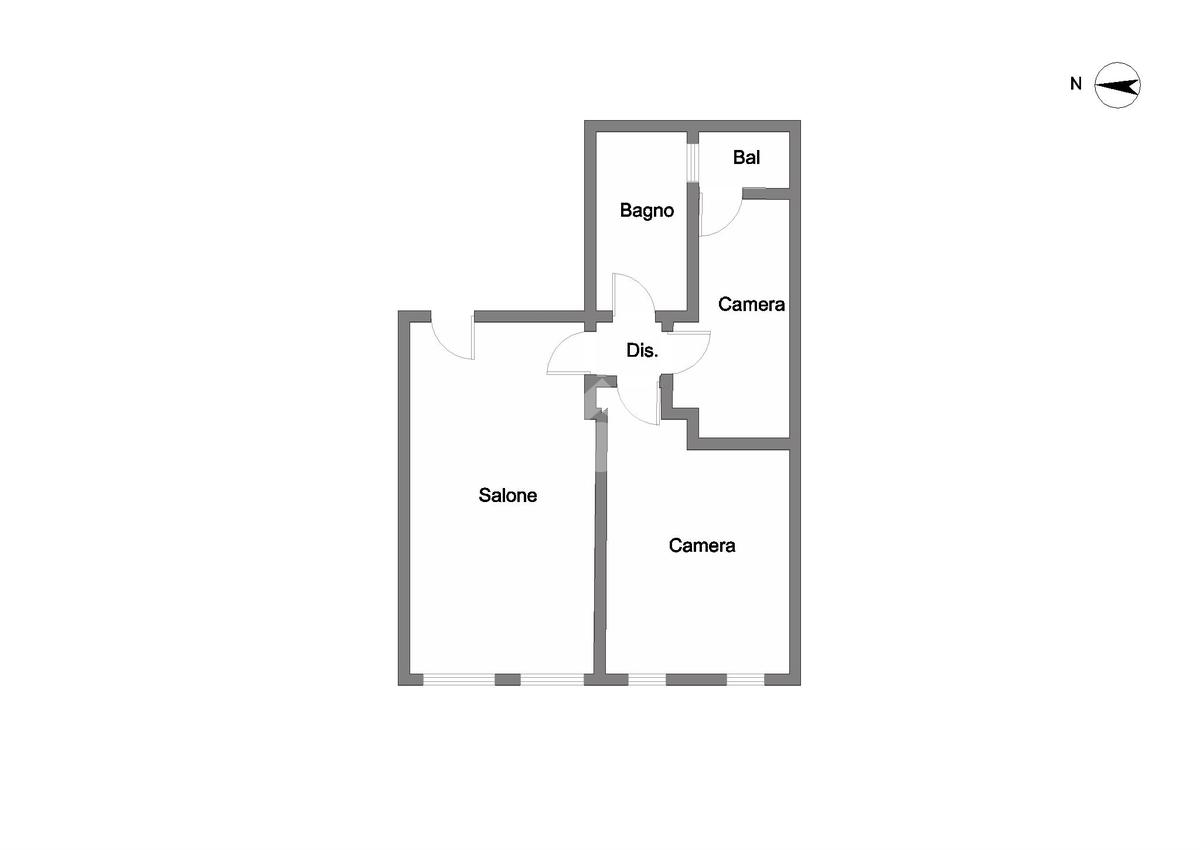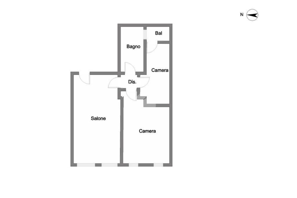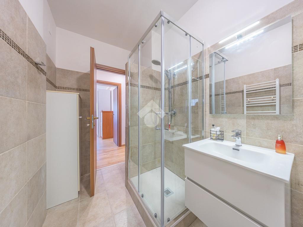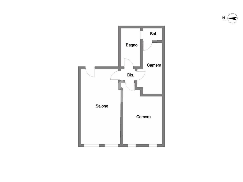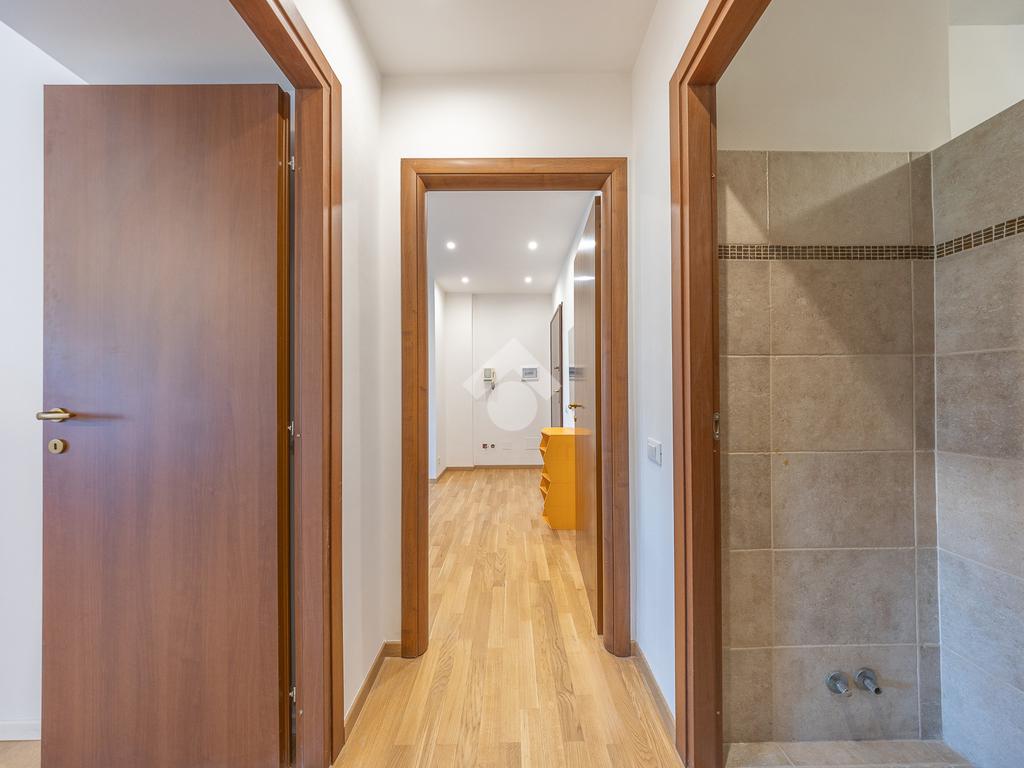 tramite disimpegno si accede alla camera matrimoniale, alla cameretta con uscita sul balcone e al bagno finestrato con box doccia.