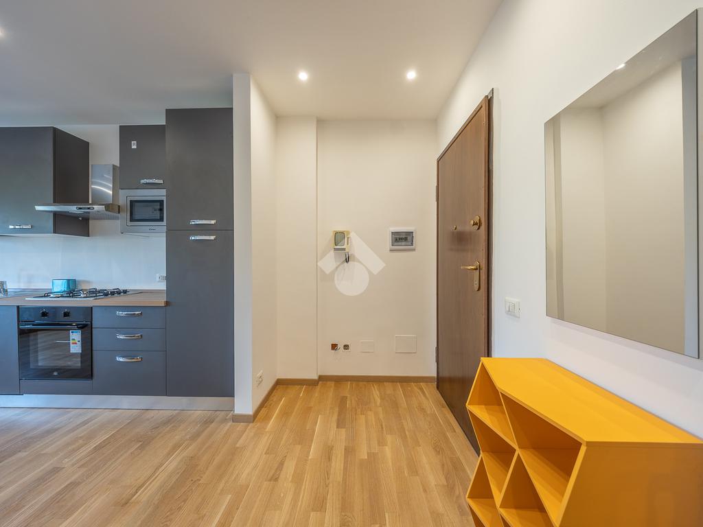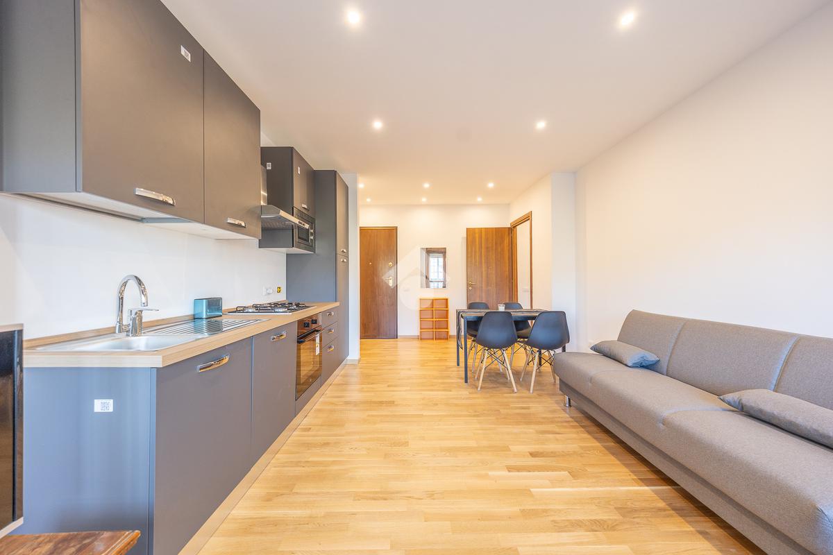 L’ingresso conduce alla zona giorno con angolo cottura;