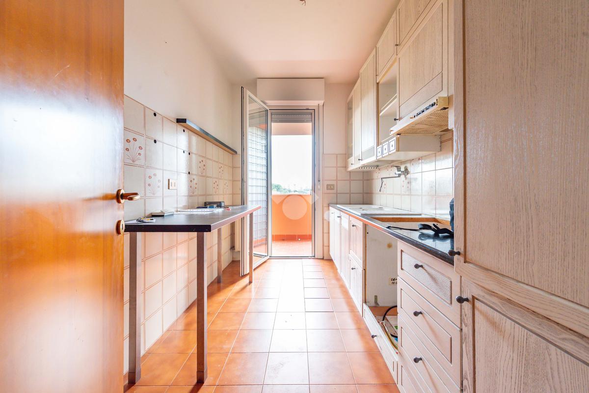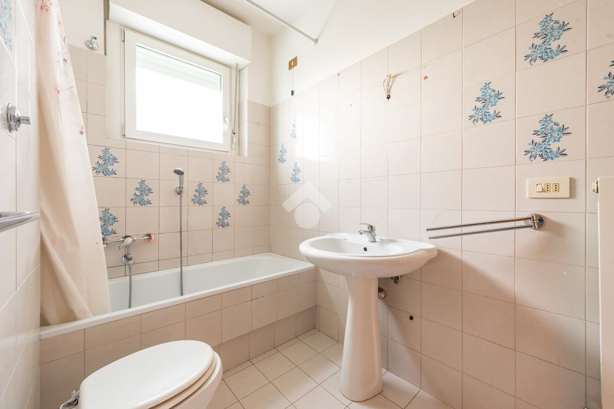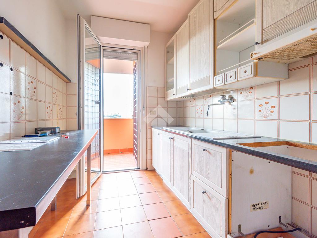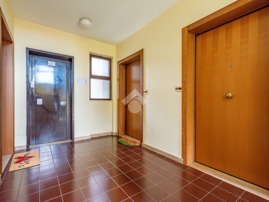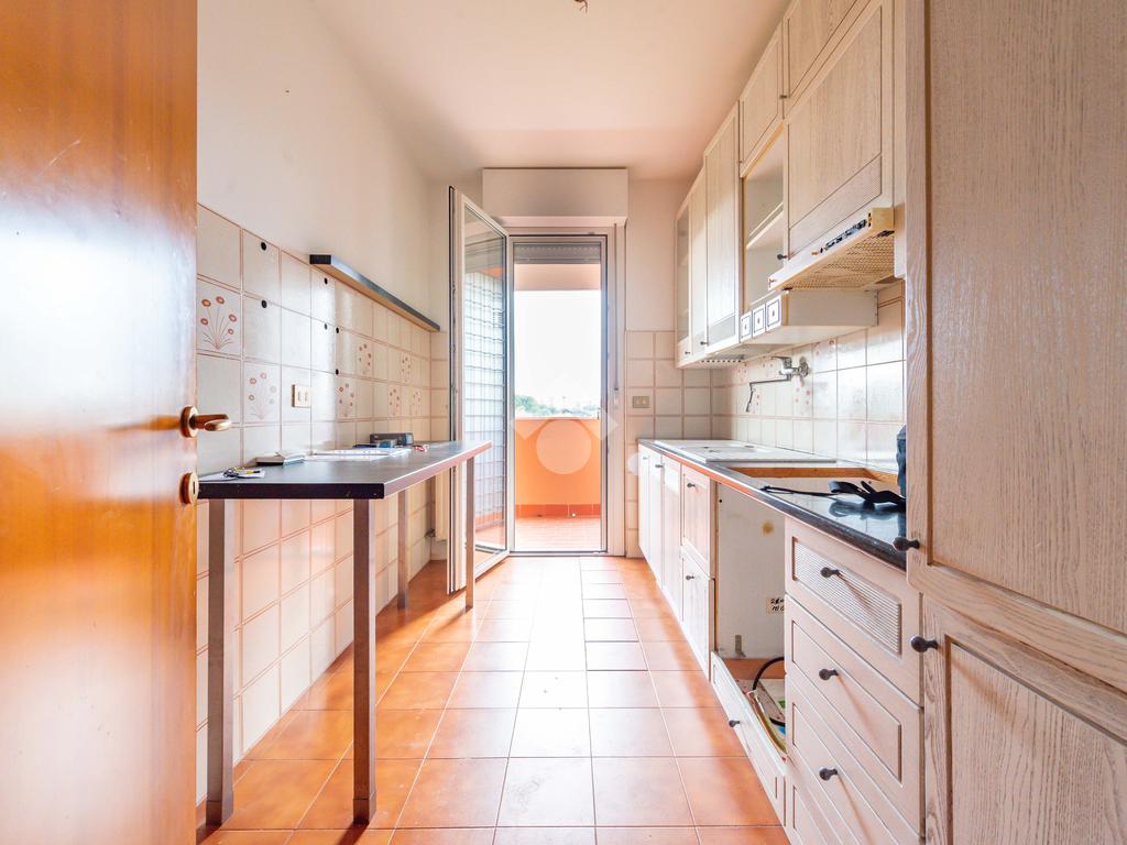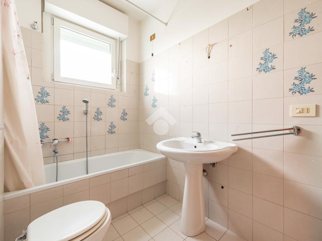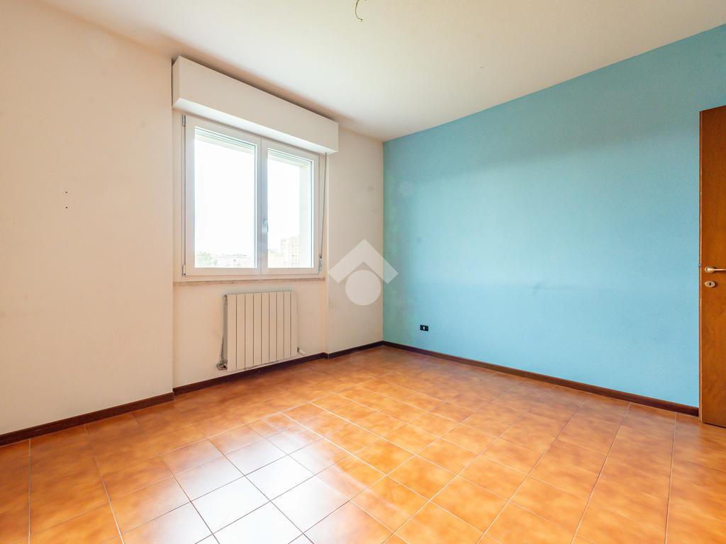 La zona notte, ben separata da un pratico disimpegno, comprende una camera matrimoniale e un bagno finestrato con box doccia. La presenza di armadi a muro sia nella camera che nel disimpegno garantisce ulteriore spazio contenitivo.