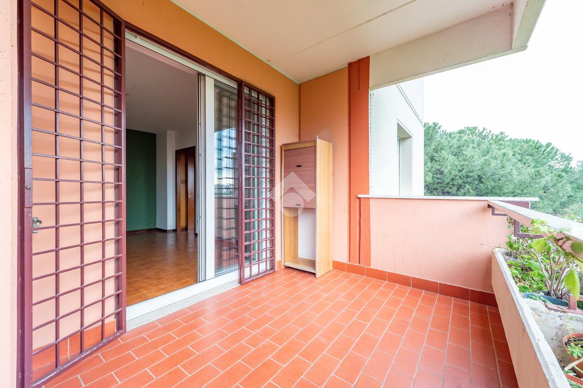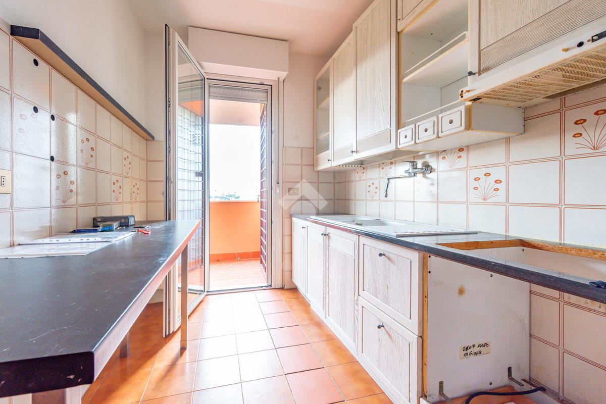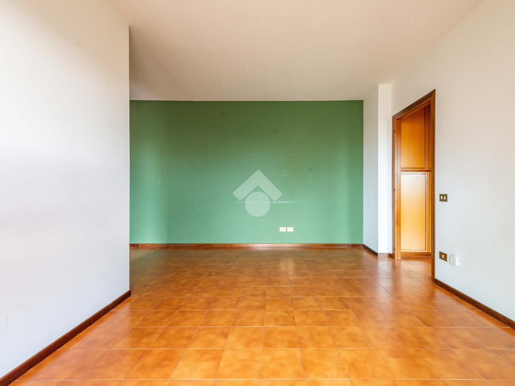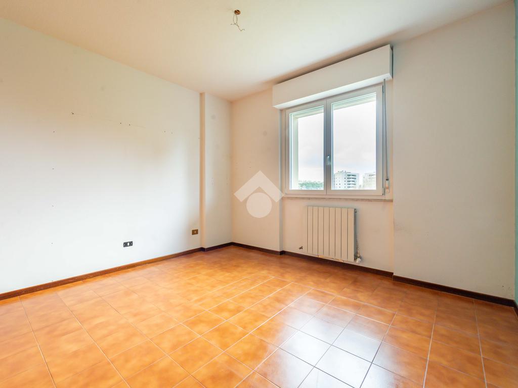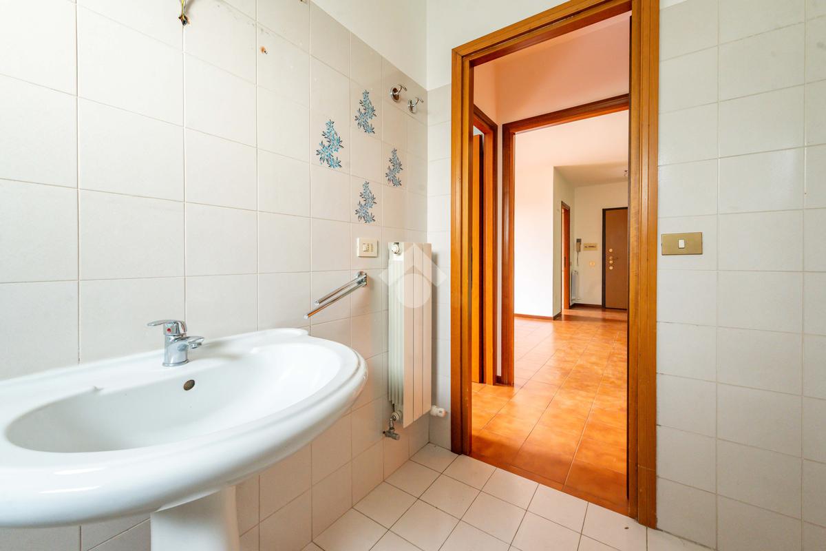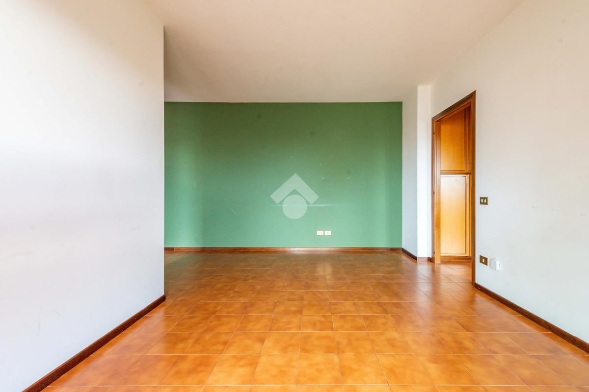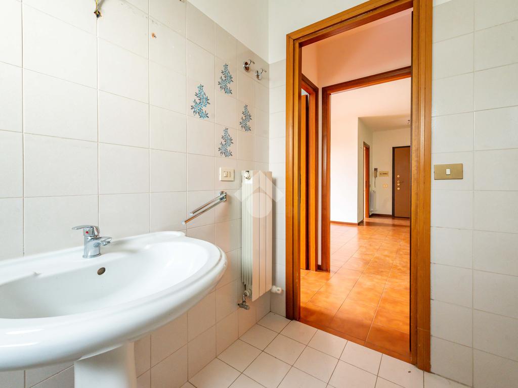 La zona notte, ben separata da un pratico disimpegno, comprende una camera matrimoniale e un bagno finestrato con box doccia. La presenza di armadi a muro sia nella camera che nel disimpegno garantisce ulteriore spazio contenitivo.